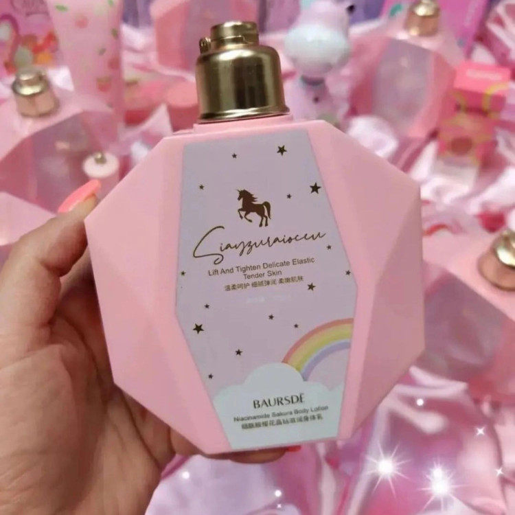 🦄آبرسان و مرطوب کننده 🦄براق و درخشان کننده پوست 🦄روشن کننده پوست 🦄رفع بوی نامطبوع پوست 🦄مناسب انواع پوست 🦄افزایش الاستیسیته پوست 🦄نرم کننده و دارای رایحه فوق العاده 🦄دارای عصاره گل ساکورا و نیاسینامید 🦄حجم 300 میل